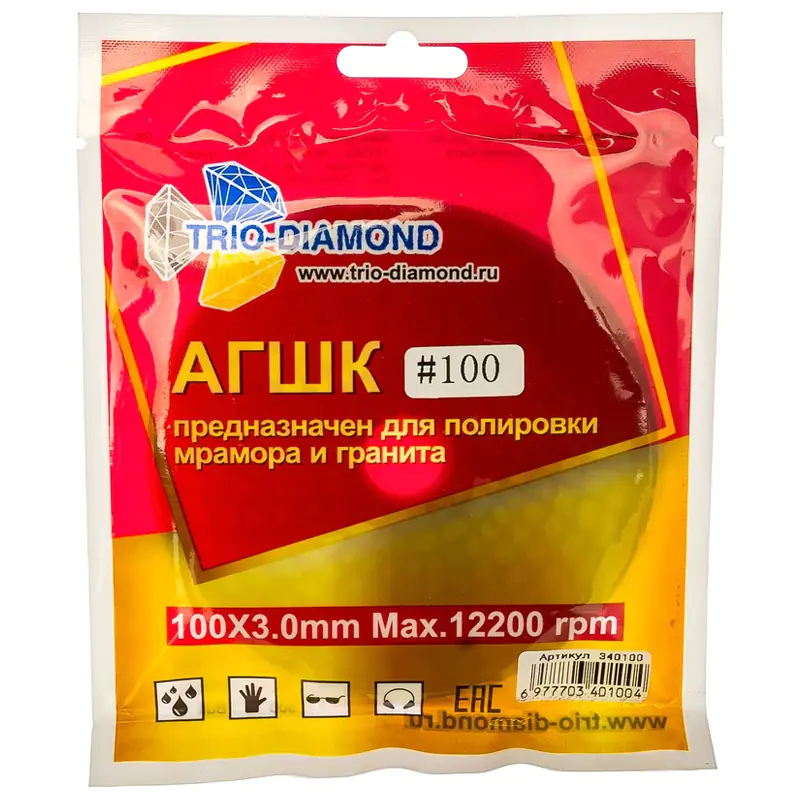 Алмазный гибкий шлифовальный круг "Черепашка" №100 предназначен для мокрой шлифовки/полировки гранита, камня, мрамора. Высота рабочего слоя 4 мм. Диаметр круга 100 мм. Размер зерна Р100.