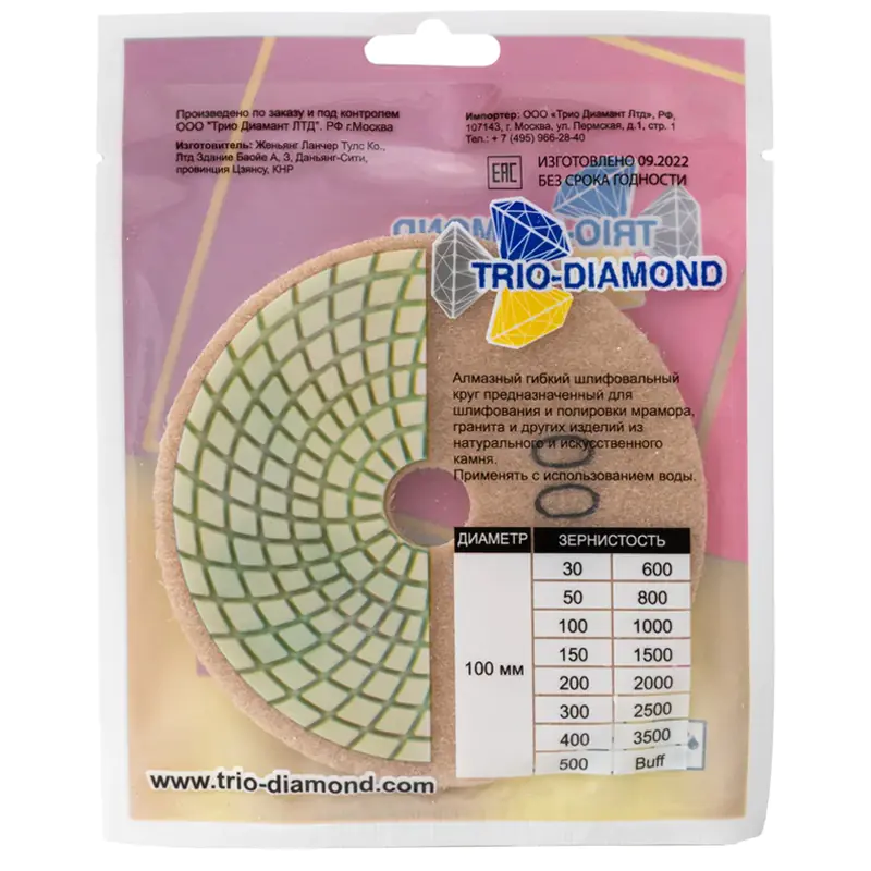 Алмазный гибкий шлифовальный круг "Черепашка" №600 предназначен для мокрой шлифовки/полировки гранита, камня, мрамора. Высота рабочего слоя 4 мм. Диаметр круга 100 мм. Размер зерна Р600.
