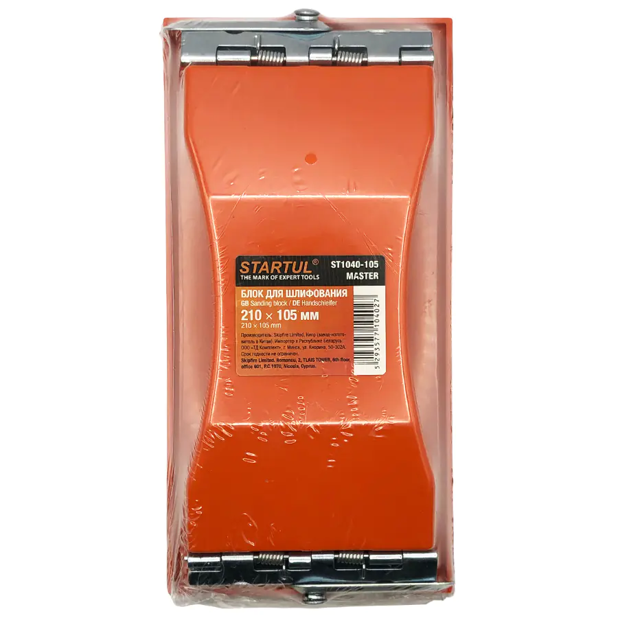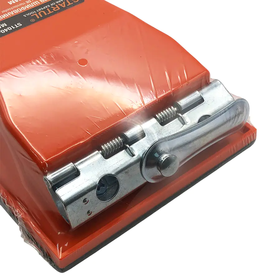 Брусок для шлифования STARTUL MASTER представляет собой плоскую основу, на которой находятся зажимы для крепления наждачной бумаги или специальной шлифовальной сетки. Размер бруска 210 х 105 мм. Брусок предназначен для шлифования и зачистки различных поверхностей, с помощью абразивных материалов (шлифлист, сетка). Вес 230 гр.
