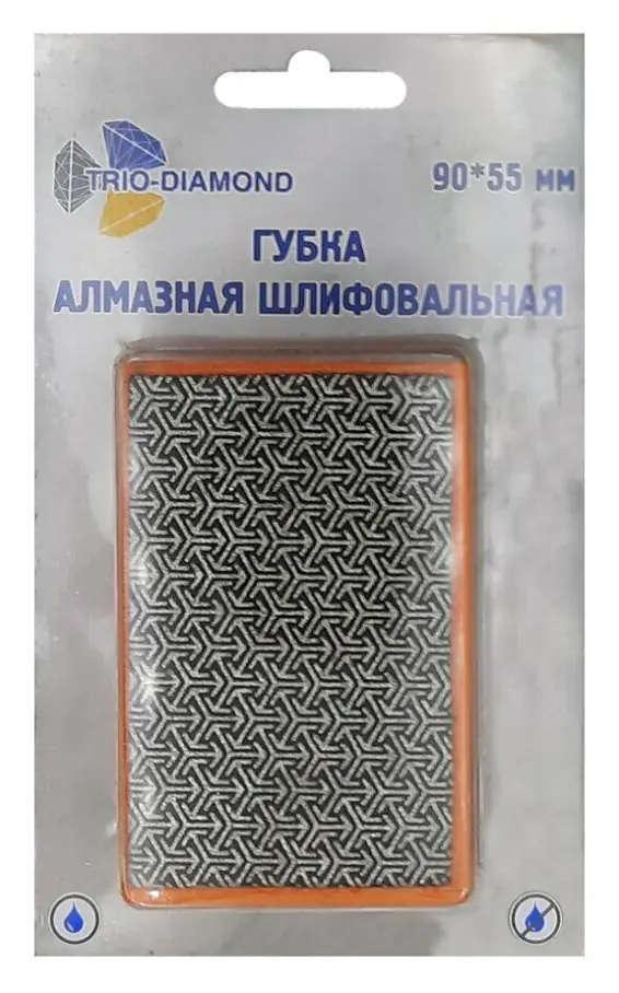 Губка алмазная шлифовальная 90х55мм Р100 Trio Diamond предназначена для точной обработки кромки плитки из искусственного и натурального камня. Назначение: керамогранит, керамика, гранит, мрамор, стекло.