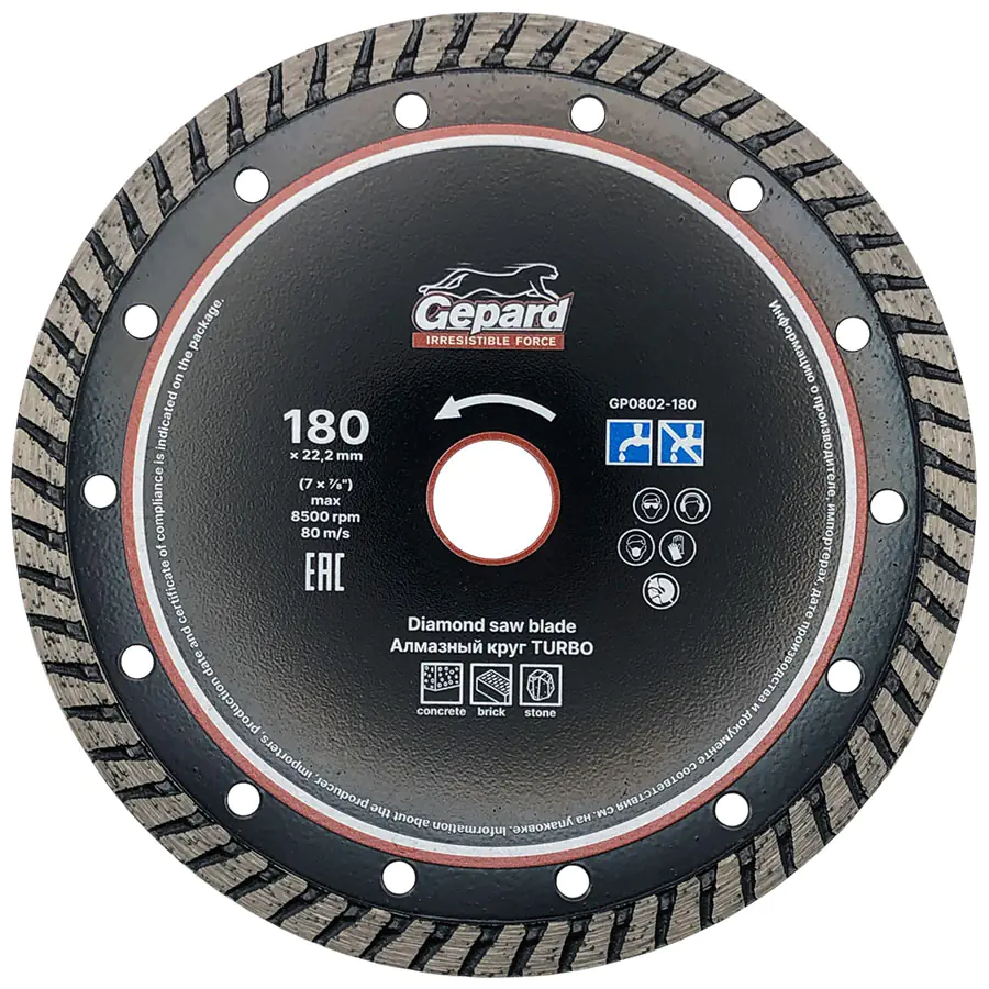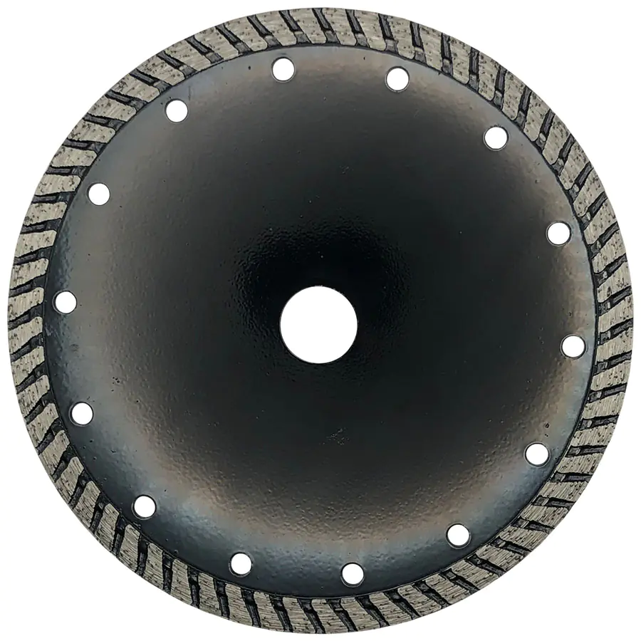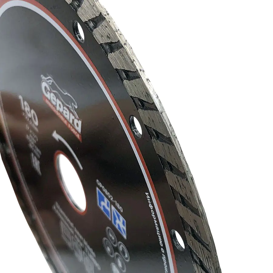 Имеет косую насечку по боковым сторонам обода, за счет чего увеличивается механическая прочность, а также повышается уровень отвода тепла при работе. Обеспечивает ровный, аккуратный и быстрый рез бетонных поверхностей. Режущая часть выполнена методом холодного прессования. Высокий ресурс использования обеспечивается улучшенным качеством алмазных зерен и оптимально подобранной металлической связкой. Охлаждение водой увеличивает ресурс круга.