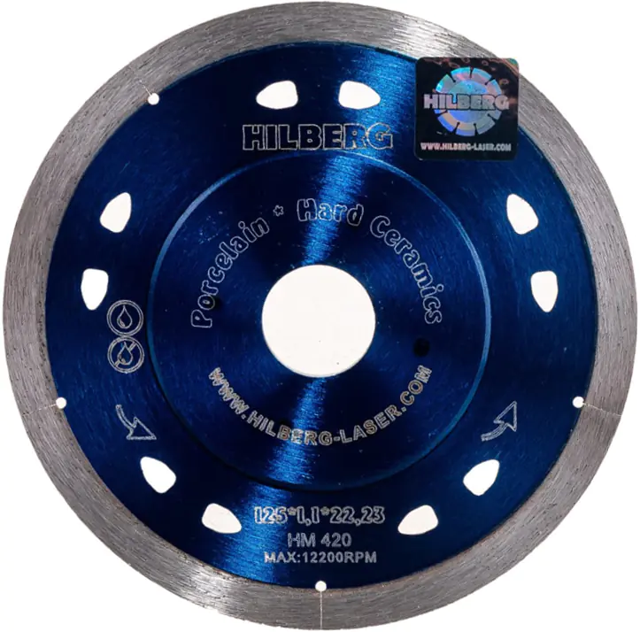 Круг отрезной алмазный Hilberg HM420 Сплошной 125 х 22 мм применяется для деликатных работ по твердой керамике, и керамограниту. Высококачественный диск с толщиной режущей кромки в 1,1 мм. Во время резки появляется большое количество пыли, это стоит учитывать до начала работ. Также нужно обязательно использовать средства индивидуальной защиты (очки, респиратор, наушники, перчатки).