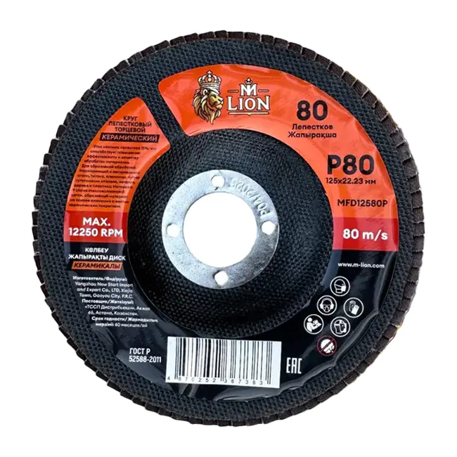 Круг лепестковый торцевой M-Lion 125 х 22,2 мм P80 – угол наклона лепестков диска 15%, что способствует повышению эффективности и качеству обработки материалов. Подходит для абразивной обработки: нержавеющей и легированной стали, титана, алюминия, чугуна, тугоплавких сплавов, металла, дерева и пластика. Материал: 9 слоев стекловолоконной сетки, абразивный материал на основе алюминия с желтым керамическим покрытием.