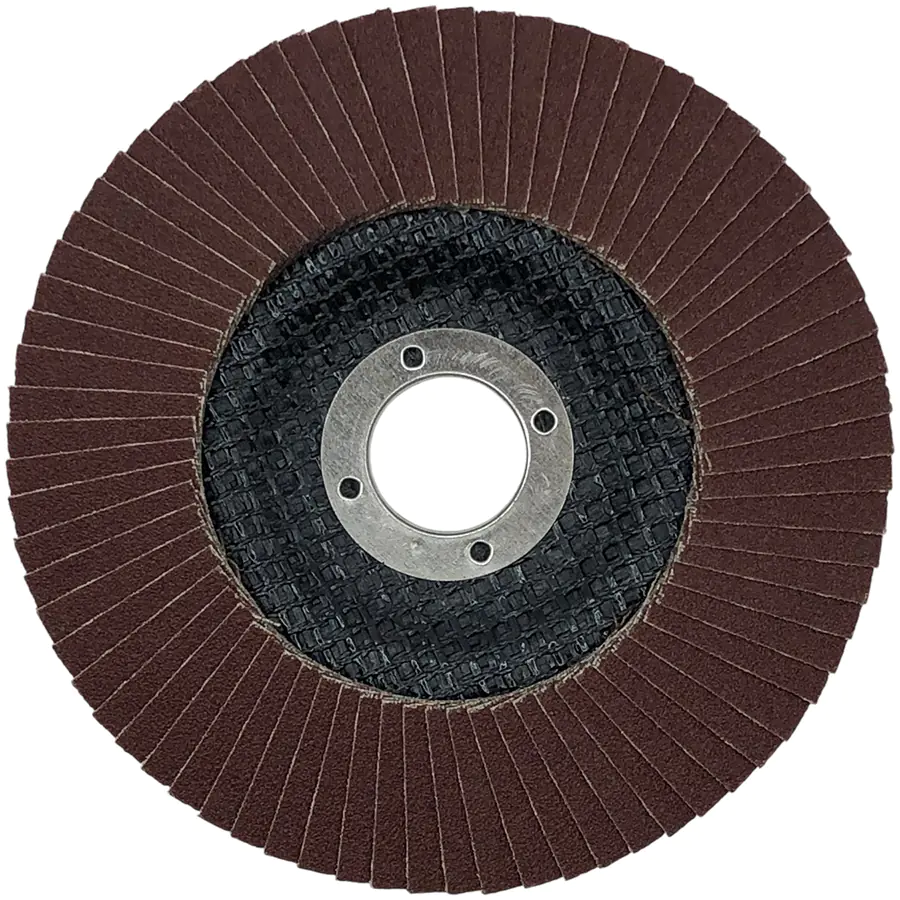 Круги зачистные из шлифшкурки лепестковые представляют собой набор лепестков из шлифовальной шкурки закрепленные высокопрочной смолой на специальной оснастке в виде «тарелки». Благодаря этой особенности, торцевые круги имеют большую долговечность по сравнению с кругами из абразивного волокна, а также более высокую производительность при шлифовании.