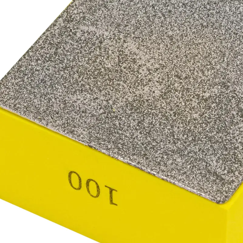 Алмазный шлифовальный брусок (притир) DLT #100 предназначен для шлифовки и полировки краёв и срезов на керамической плитке, керамограните, искусственном и натуральном камне, стекле. Подходит для сухого и мокрого шлифования. Обработка материала с водяным охлаждением позволяет получить лучшее качество поверхности и значительно увеличит ресурс алмазной губки. Брусок полугибкий (по ощущениям напоминают мягкую резину, чем поролон), что улучшает эргономичность бруска и снижает утомляемость руки во время его использования. Размер: 55х30х90 мм.