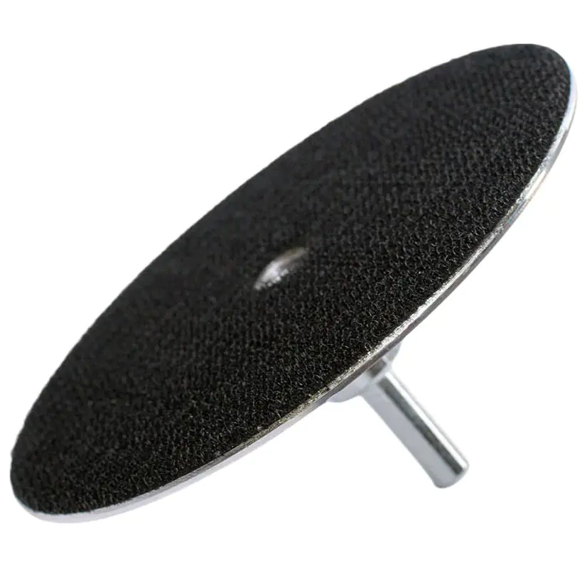Опорная тарелка с жестким основанием на Velcro липучке для крепления кругов для УШМ 125 мм. Алюминиевая тарелка способна качественно работать с любыми абразивными кругами, в том числе с зернистостью Р24-40. Алюминиевая тарелка при использовании с АГШК обеспечивает идеальную жесткость не только при грубом шлифовании, но и в случае заусовки и снятия фасок с использованием АГШК.