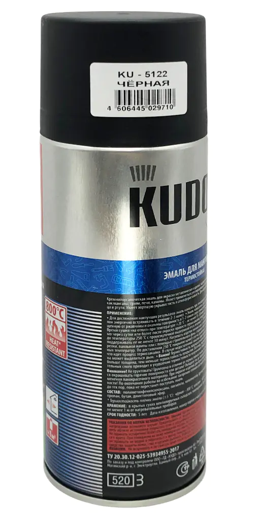 Эмаль аэрозольная термостойкая для мангалов KUDO (черный) 520 мл, KU-5122