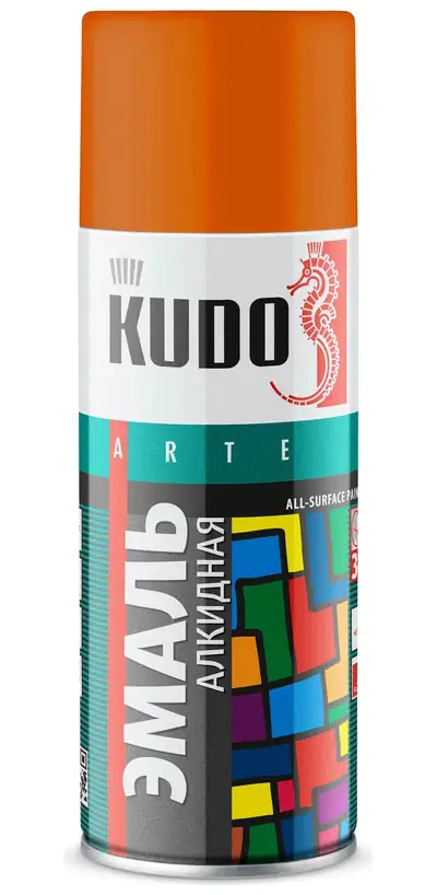 Универсальная эмаль KUDO оранжевая KU-1019 предназначена для окраски предварительно загрунтованных металлических и деревянных поверхностей. Аэрозольная краска легко наносится на труднодоступные места. Образует долговечное покрытие с хорошей укрывистостью, атмосферостойкостью, превосходной адгезией к окрашиваемой поверхности. Имеет высокую твердость, светостойкость и стойкость к растворителям. Применяется для наружных и внутренних работ.