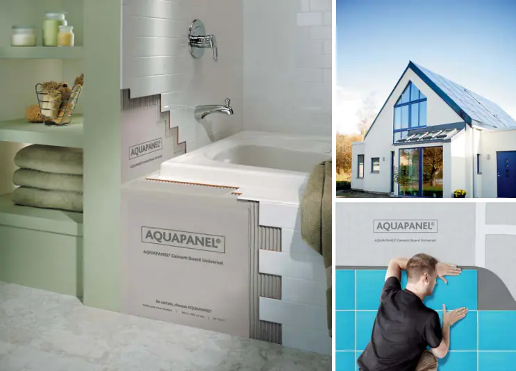 АКВАПАНЕЛЬ ® Цементная плита Универсальная используется при внутренней и наружной отделке стен, создании криволинейных перегородок и арок, подвесных потолков, дверных и оконных откосов, шахт инженерных коммуникаций, обшивке печей, каминов, подоконников и проч.