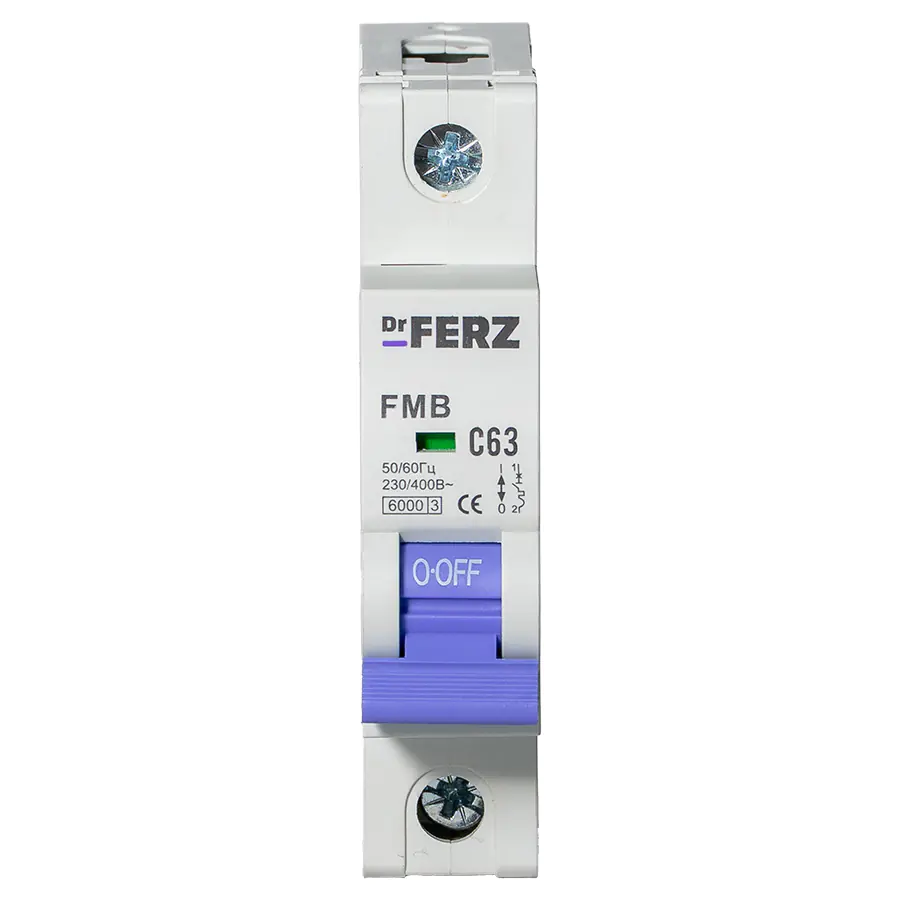 Автоматические выключатели Dr.FERZ 6kA 1P 63A тип С серии FMB – надёжное решение для защиты электрических цепей от перегрузок и коротких замыканий. Устройства рассчитаны на работу в сетях переменного тока с напряжением 230/400 В и частотой 50/60 Гц. Подходят для установки в распределительных щитах жилых, коммерческих и промышленных объектов, обеспечивают безопасное управление цепями и соответствуют современным стандартам электробезопасности.