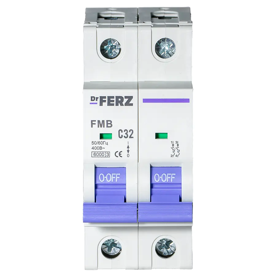 Автоматические выключатели Dr.FERZ 6kA 2P 32A тип С серии FMB – надёжное решение для защиты электрических цепей от перегрузок и коротких замыканий. Устройства рассчитаны на работу в сетях переменного тока с напряжением 230/400 В и частотой 50/60 Гц. Подходят для установки в распределительных щитах жилых, коммерческих и промышленных объектов, обеспечивают безопасное управление цепями и соответствуют современным стандартам электробезопасности.