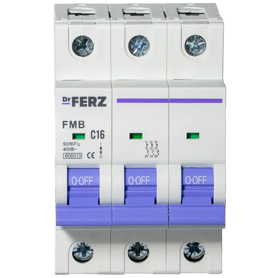 Автоматические выключатели Dr.FERZ 6kA 3P 16A тип С серии FMB – надёжное решение для защиты электрических цепей от перегрузок и коротких замыканий. Устройства рассчитаны на работу в сетях переменного тока с напряжением 230/400 В и частотой 50/60 Гц. Подходят для установки в распределительных щитах жилых, коммерческих и промышленных объектов, обеспечивают безопасное управление цепями и соответствуют современным стандартам электробезопасности.