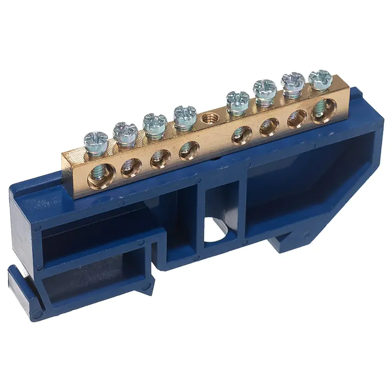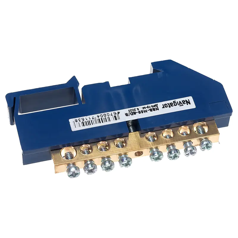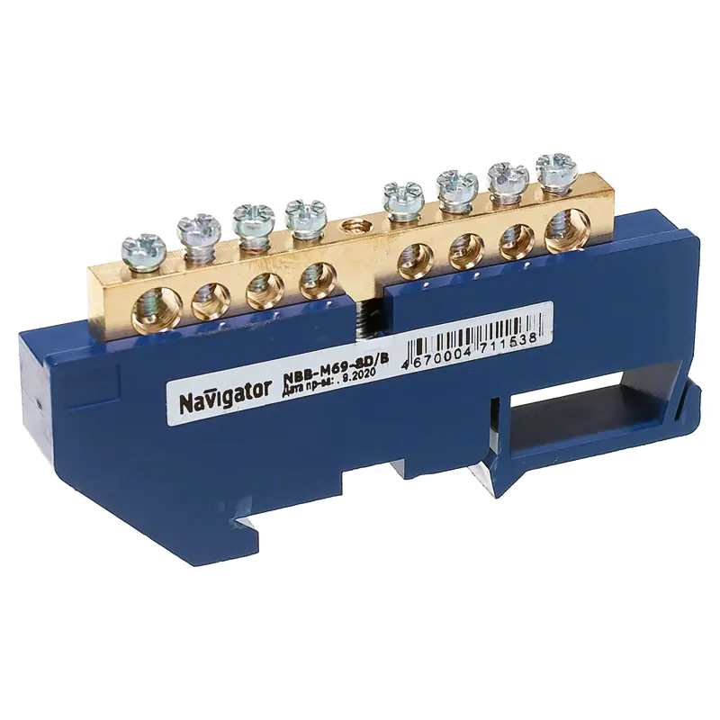 Нулевые шины на DIN-изоляторе Navigator серии NBB предназначены для электрического и механического соединения нулевых рабочих (N) и нулевых защитных (PE) проводников, и представляют из себя целиковую латунную планку с отверстиями и винтовыми прижимами. Как правило, нулевые шины крепятся в распаячных коробках или распределительных щитках.