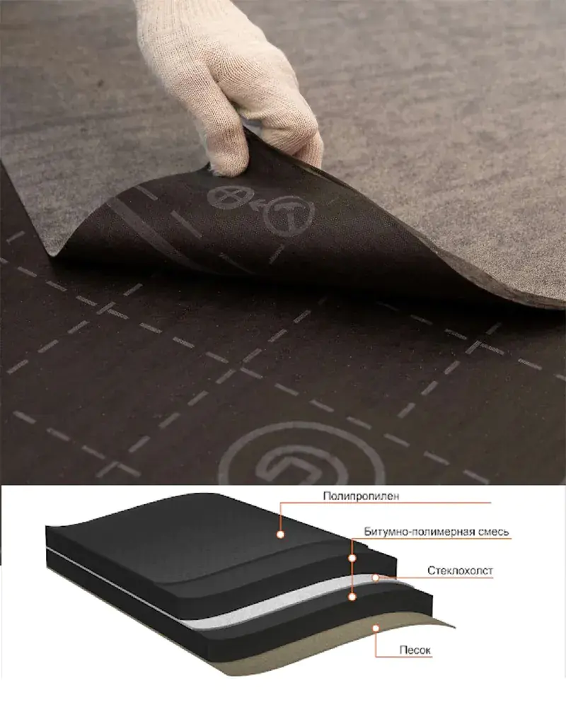 Применяется в качестве дополнительного подкладочного слоя в конструкциях скатных кровель с финишным покрытием из гибкой, битумной черепицы.