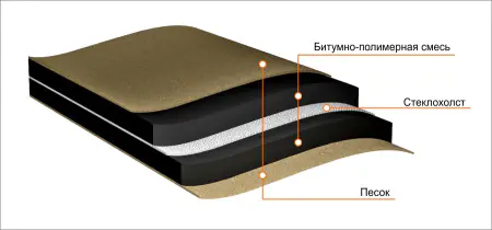 Подкладочный рулонный гидроизоляционный материал. Получают путем пропитки армирующей основы (стеклохолст) битумным вяжущим, с последующим нанесением на обе поверхности вяжущего защитных слоев. Верхняя сторона шероховатая, покрыта мелкозернистой посыпкой. В качестве защитных слоев применяют мелкозернистый песок. В одном рулоне 15 м2.
