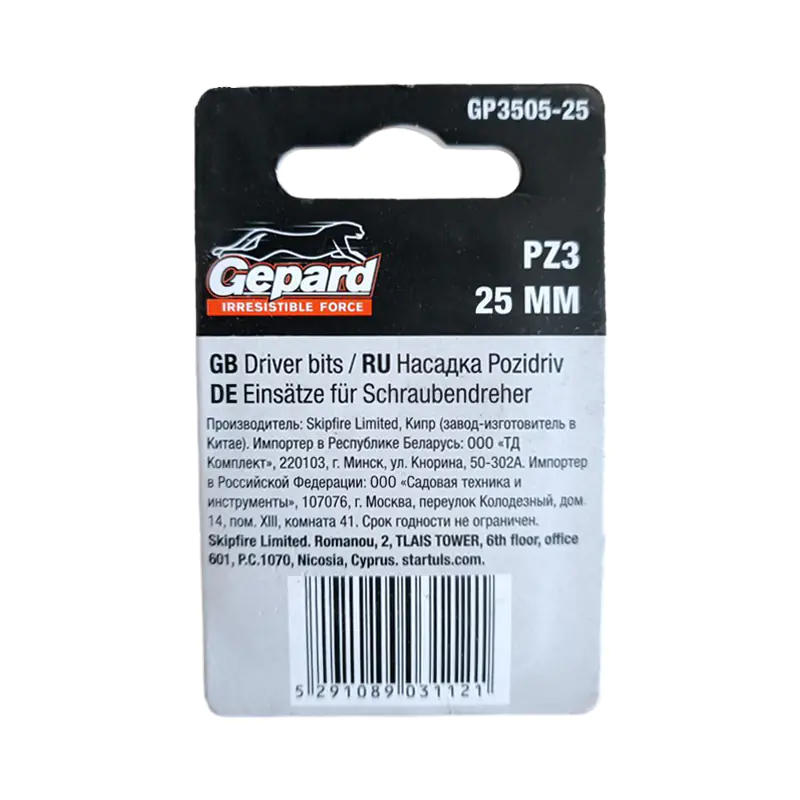 Характеристики бит Gepard GP3505-25: