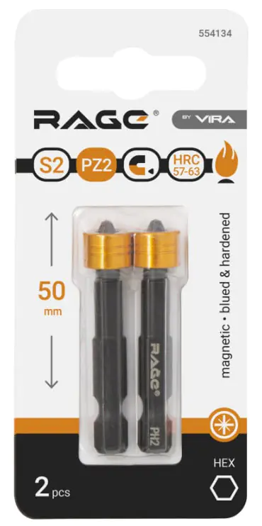 Бита магнитная с ограничителем PZ2х50 мм (2 шт) RAGE by VIRA 554134