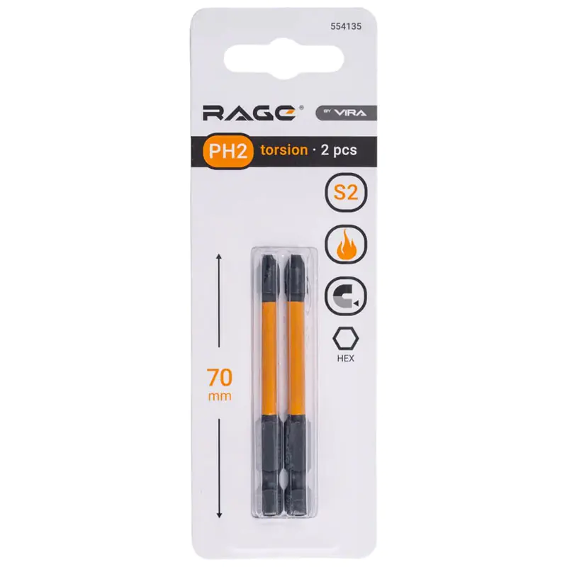 Технические характеристики биты ударной Rage by VIRA IMPACT PH2x70: