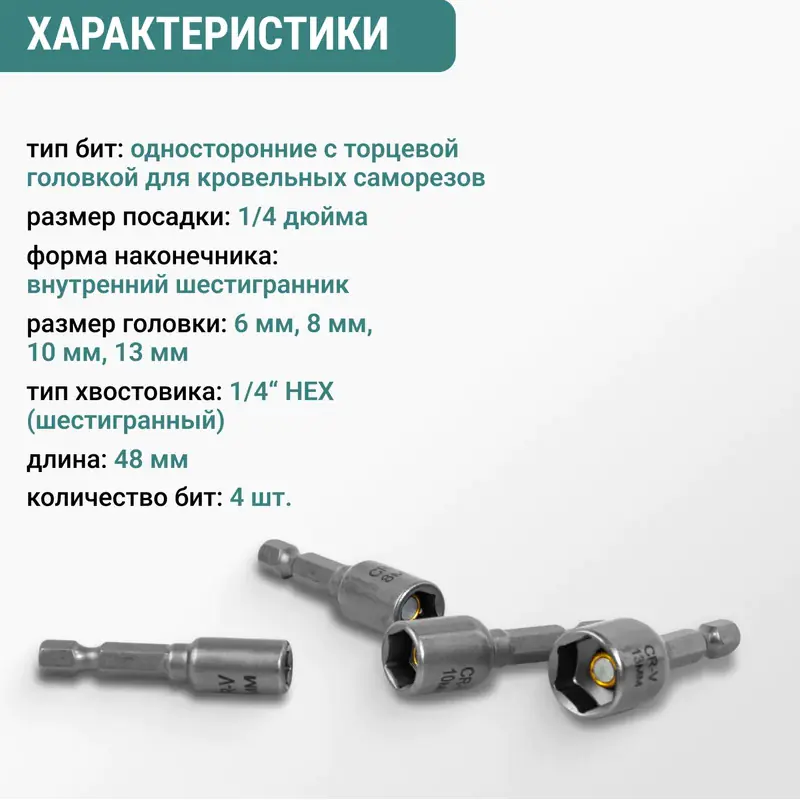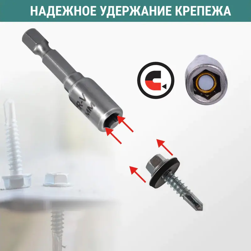 - Применение: для монтажа и демонтажа кровельных саморезов и крепежных элементов с шестигранной головкой.