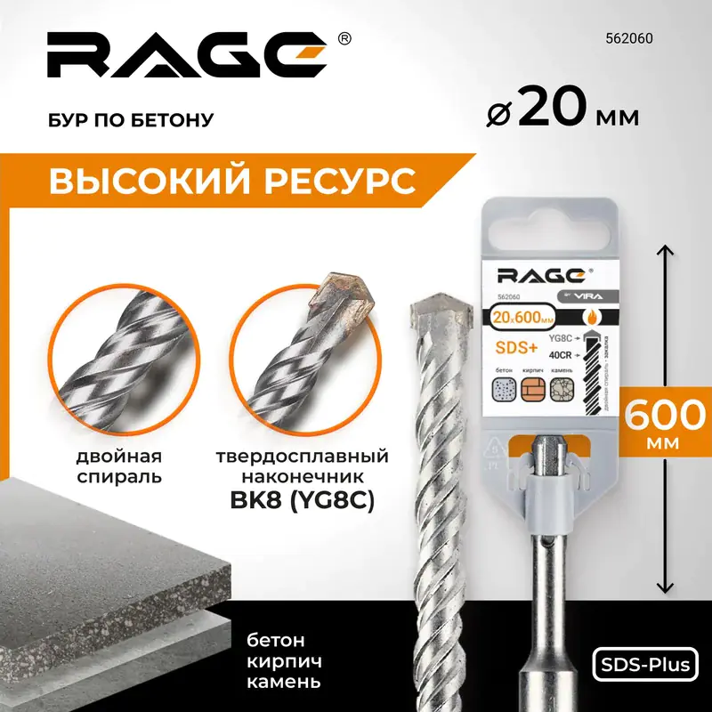 Бур SDS-plus 20х600 мм предназначен для ударного сверления бетона, кирпича и камня. Тело бура изготовлено из 40Cr, наконечник из YG8. Идеально подходит для создания глубоких отверстий при прокладке коммуникаций и монтажных работах.