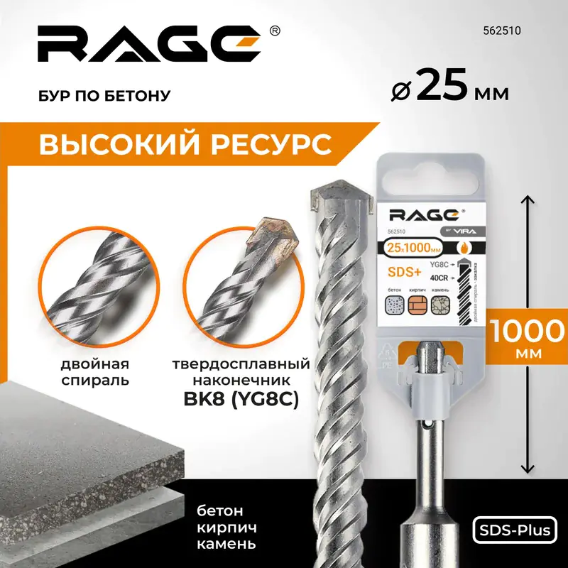 Бур SDS-plus 25х1000 мм предназначен для ударного сверления бетона, кирпича и камня. Тело бура изготовлено из 40Cr, наконечник из YG8. Идеально подходит для создания глубоких отверстий при прокладке коммуникаций и монтажных работах.