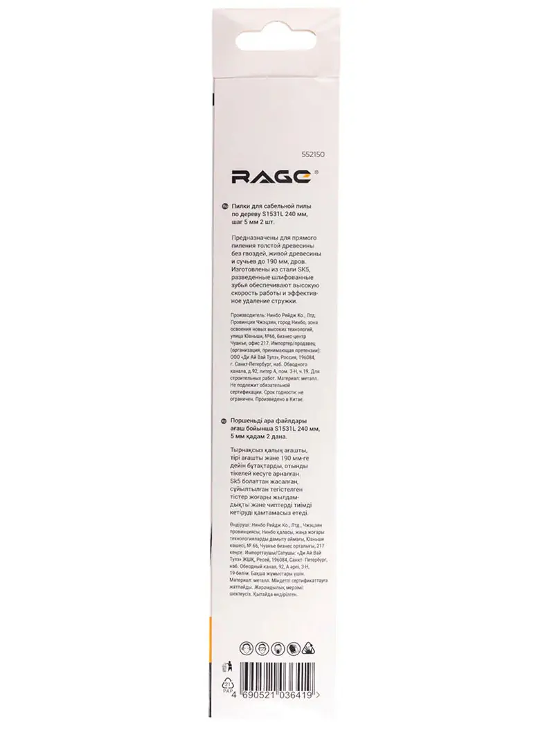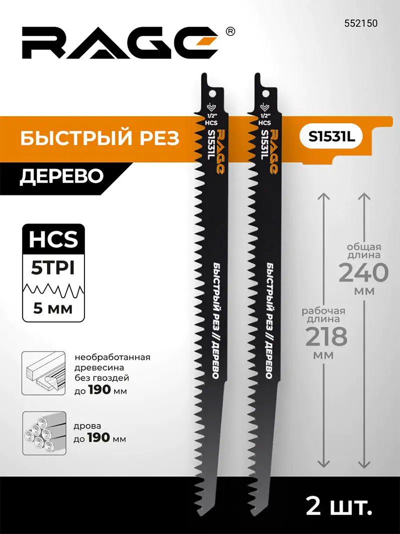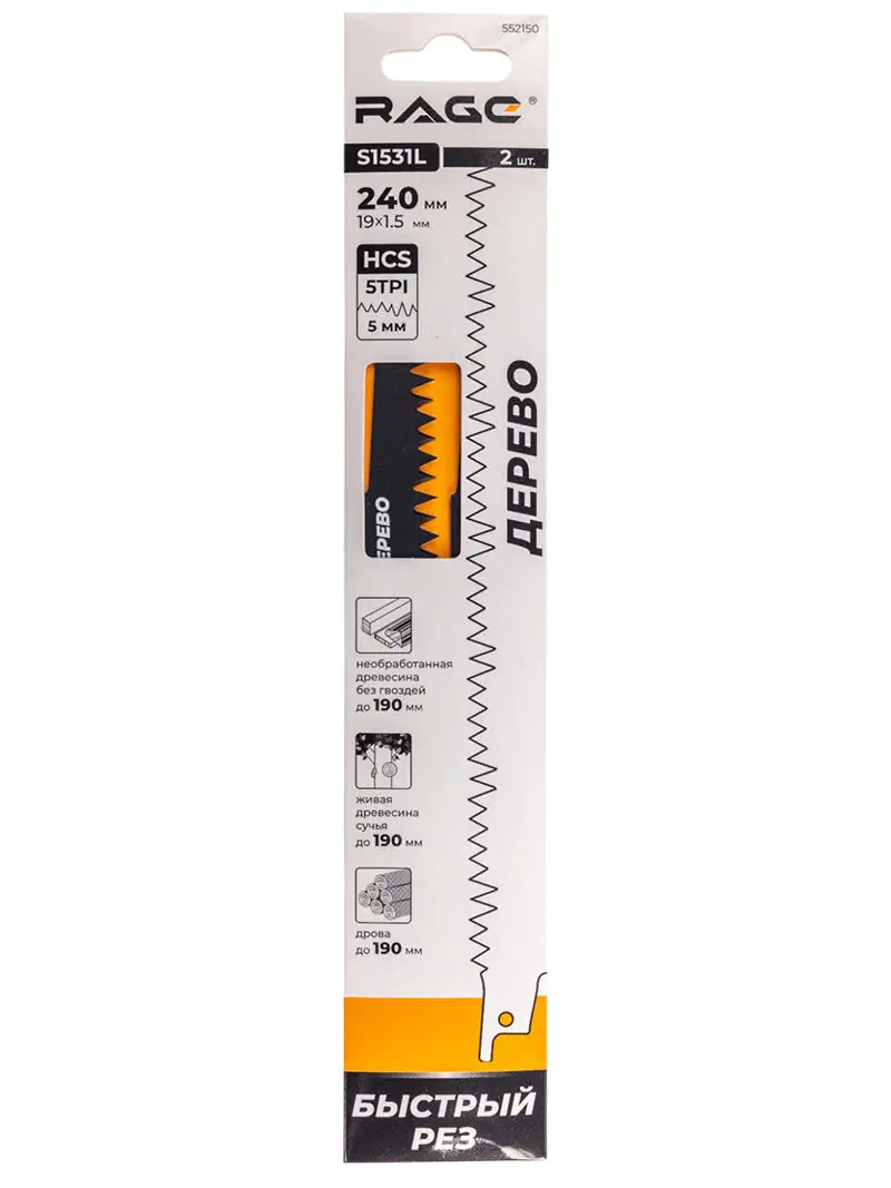 Свойства пилок сабельных RAGE S1531L: