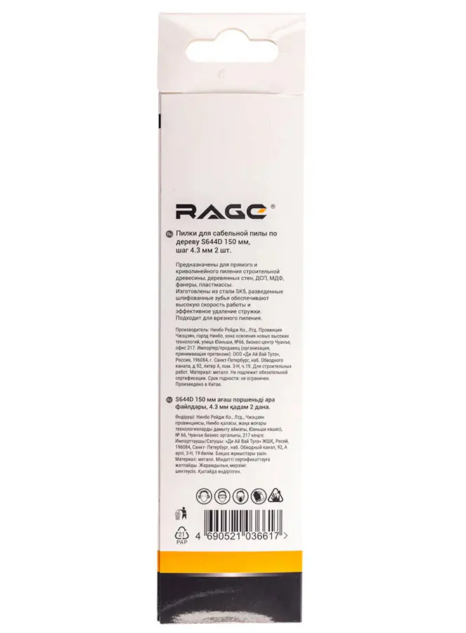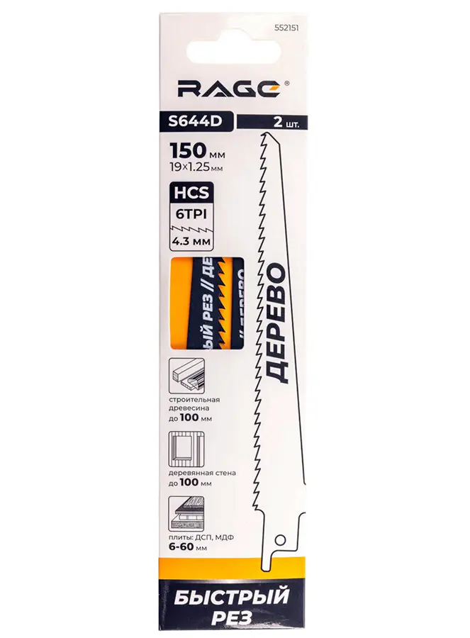 Свойства пилок сабельных RAGE S644D: