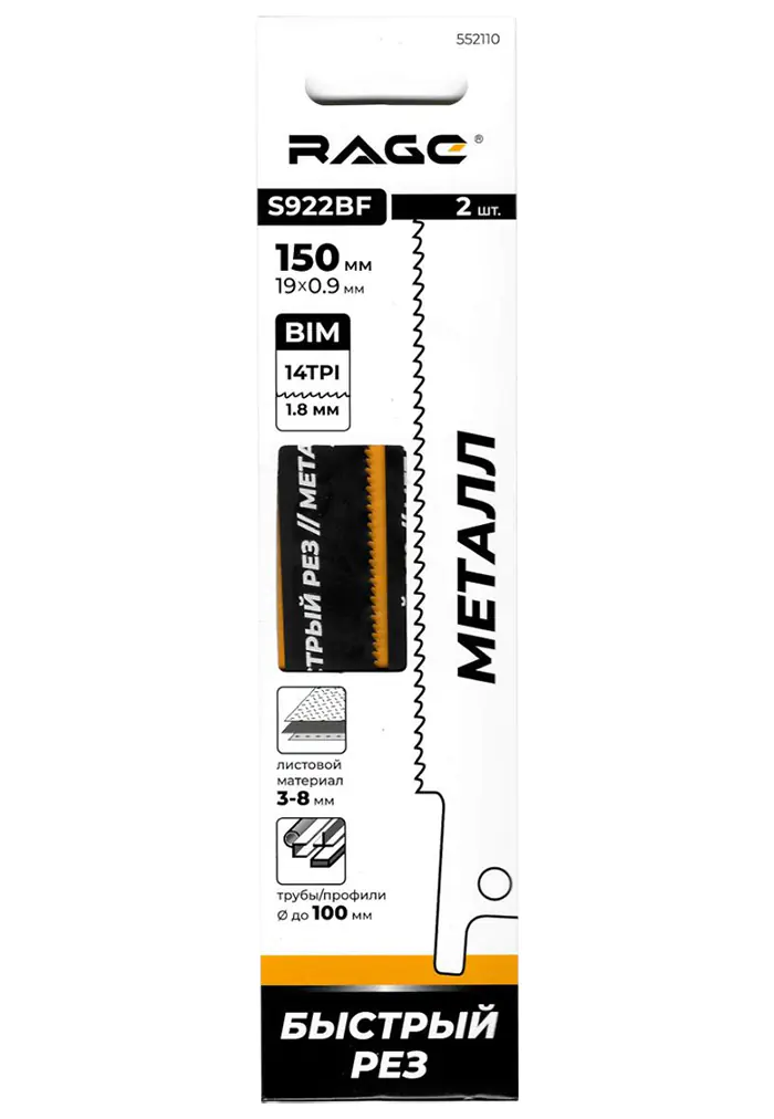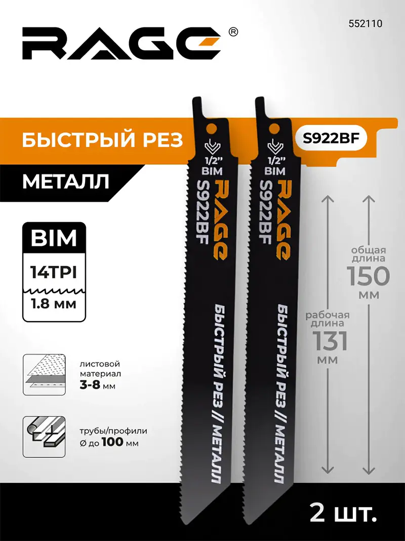 Свойства пилок сабельных RAGE S922BF: