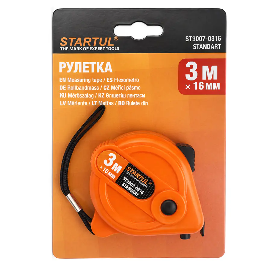 Рулетка измерительная STARTUL Standart 3 м х 16 мм. Наверное нет ни одной стройки на которой можно обойтись без рулетки. При своей простоте это незаменимый помощник. Но нужно быть осторожным – при сматывании лента может порезать пальцы.