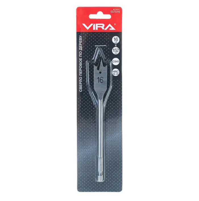 Сверло VIRA перовое по дереву 16х152 мм используется в комплексе с ударными дрелями для сверления отверстий в ДСП, ДВП, фанере, ламинате, тонких досках, а также во всех породах твёрдого и мягкого дерева. Сверло выполнено из высококачественной инструментальной стали, что обеспечивает высокую прочность и сохранение режущих качеств инструмента даже после длительного использования. Сверло имеет центрирующее остриё для чистых и точных отверстий. Боковые режущие грани способствуют лёгкому отводу стружки из места обработки.