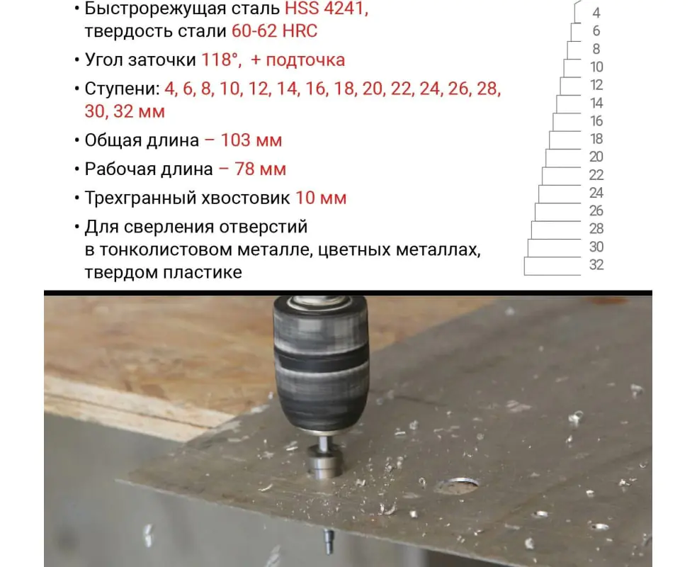 - Применение: для сверления отверстий в тонколистовом металле, цветных металлах, твердом пластике.
