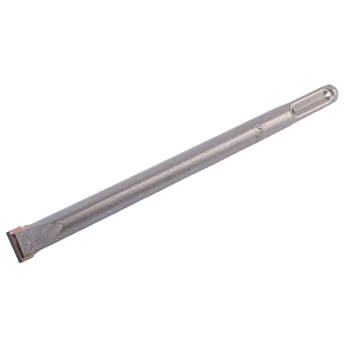 Зубило используется для выбивания бетона, кирпича и штробления стен. Имеет твердосплавный наконечник из карбидо вольфрамового сплава YG8C. Наконечник значительно продлевает срок службы зубила и на протяжении всего период эксплуатации обеспечивает высоко качественный результат благодаря возможности его заточки.