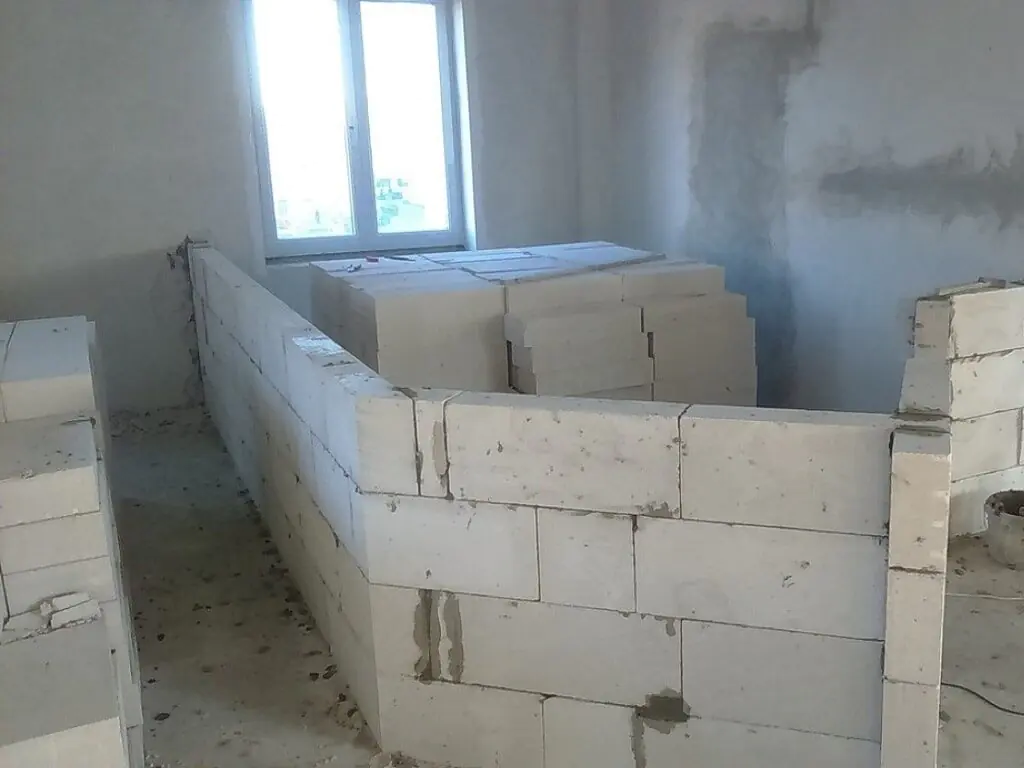 Блоки толщиной 50, 75, 100, 120, 125, 150 и 200 мм используются для возведения перегородок. Внешнюю стену строить из них не стоит – в наших условиях для этого необходимы блоки толщиной от 300 мм. Как бы хорошо не был положен блок в перегородке, все же очень редко удается обойтись только шпатлеванием (без первоначального оштукатуривания).