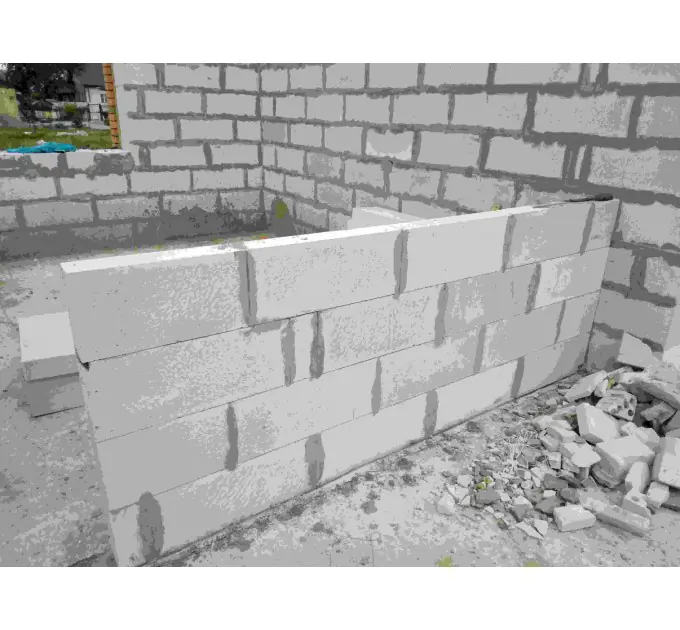 Блок грузится из паллетов по порядку, без возможности отбирать. Бывает до 10% боя. В процессе кладки перегородки блок так или иначе подрезается (чтобы верхний шов не попадал на нижний) – поэтому бой уходит на подрезку.