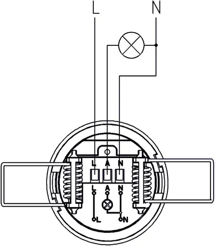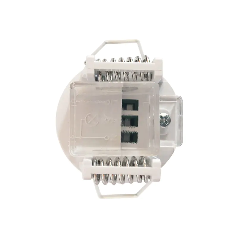 - Разогните металлические пружины по бокам устройства в вертикальное положение, вставьте прибор в отверстие на потолке. Пружины автоматически зафиксируют прибор.