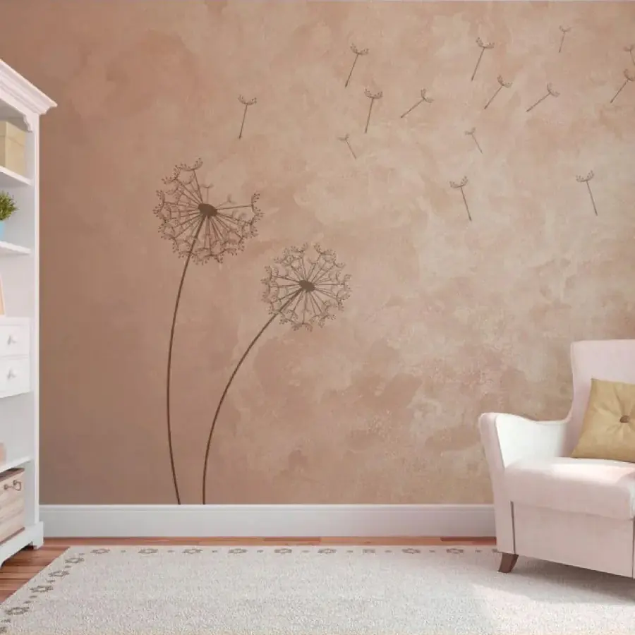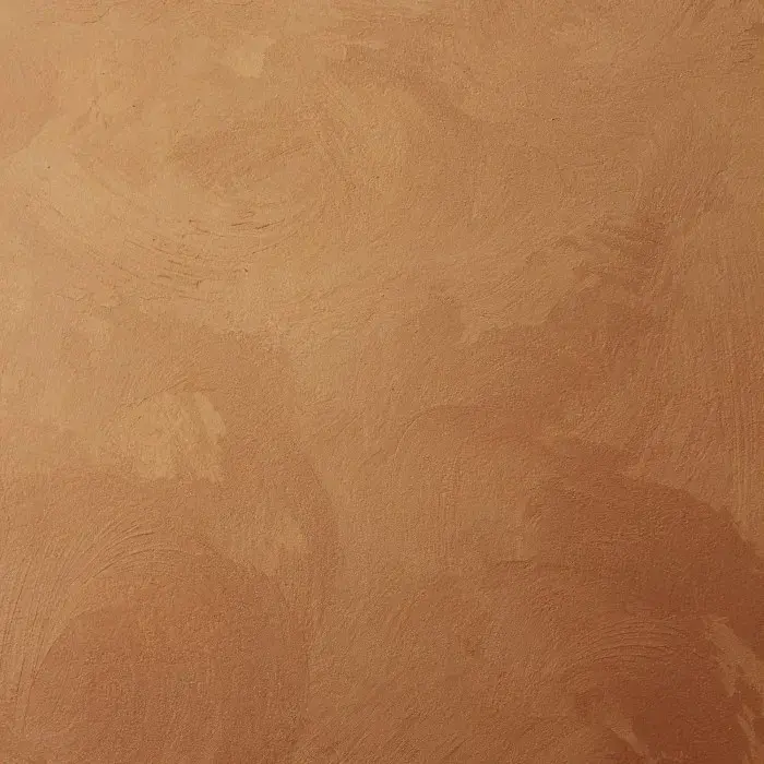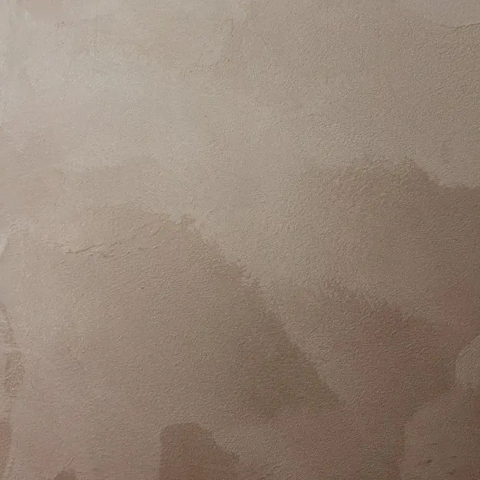 • 2 слой – после высыхания первого слоя (примерно через 30 мин.) пластиковой кельмой или кистью наносятся мазки в противоположных направлениях для создания переливов двух тонов, подобно заглаженному велюру. Кельмой можно рисовать восьмёрки, а кистью круги, создавая эффект чешуи.
