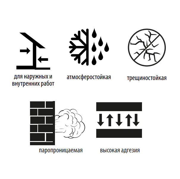 Прочная, трещиностойкая, высокая адгезия, атмосферостойкая – обеспечиваются отличные эксплуатационные характеристики декоративной отделки.