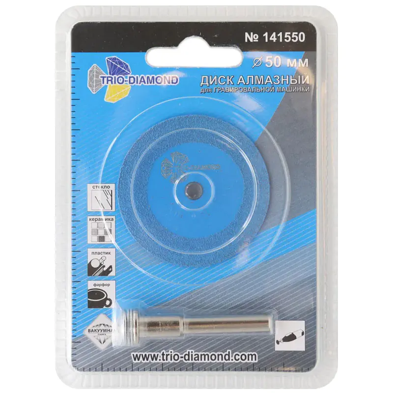 Диск алмазный 50 мм Trio-diamond для работы гравировальной машинкой предназначен для отрезных и зачистных работ. Назначение: керамогранит, керамика, фарфор, стекло, пластик.