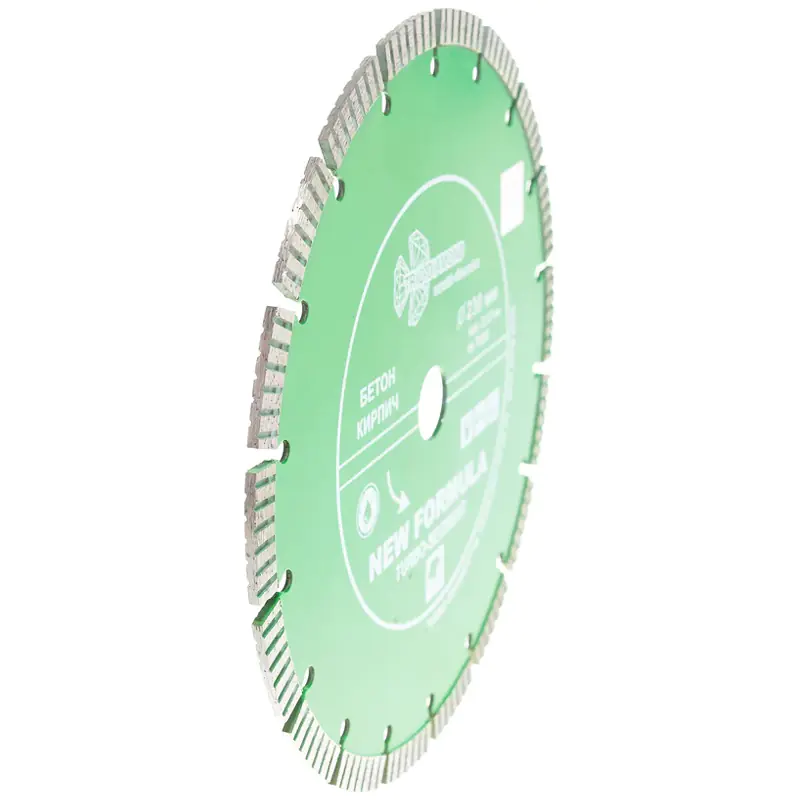 Диск алмазный отрезной Сегмент Турбо New Formula 230х22,2 мм Trio-diamond TS306. Назначение: бетон, бордюрный камень, кирпич, тротуарная плитка, твердый песчаник. Диск сочетает в себе лучшие качества дисков Turbo (скорость реза) и Segment (повышенная износостойкость). Технология производства: холодное прессование.