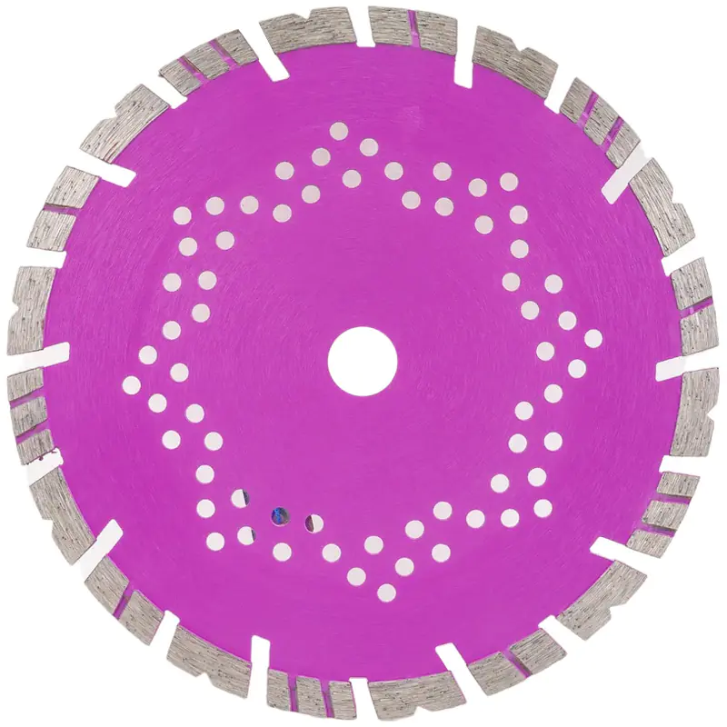 Диск алмазный отрезной Tractor 230 х 22,2 мм Trio-diamond TR706 используется для: слабо армированный бетон, бетон, бордюрный камень, натуральный камень, тротуарная плитка, кирпич. Рифлёные сегменты с увеличенной высотой режущей кромки обеспечивают высокую скорость реза, перфорация корпуса способствует дополнительному охлаждению диска.