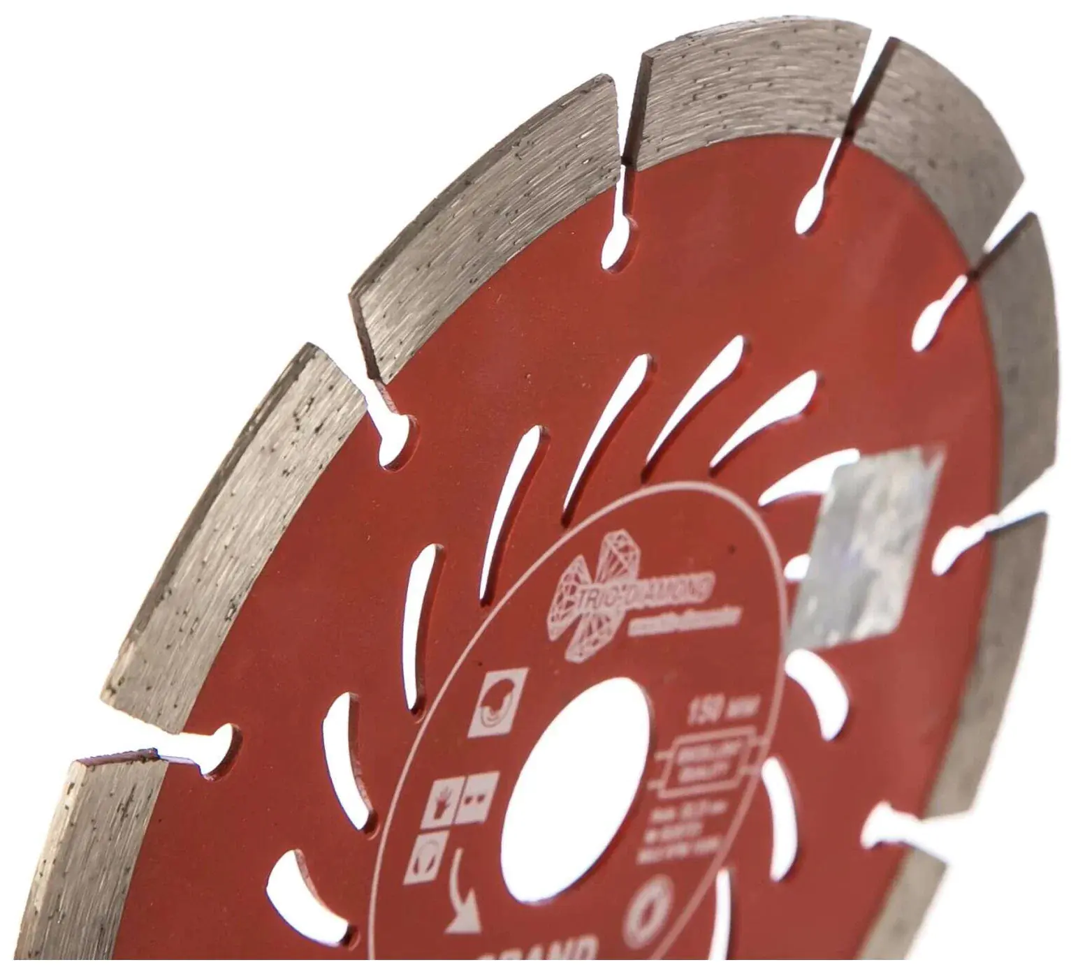 Диск алмазный Trio-diamond Grand Ultra Segment предназначен для резки высоко и среднеабразивных материалов: армированного бетона, слабо армированного бетона, бетона, огнеупоров, кирпича, тротуарной плитки, бордюрного камня, гранита, мрамора. Подходят для резки материалов повышенной твердости. Произведен методом горячего прессования с компенсационными отверстиями для дополнительного охлаждения.