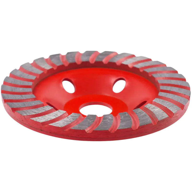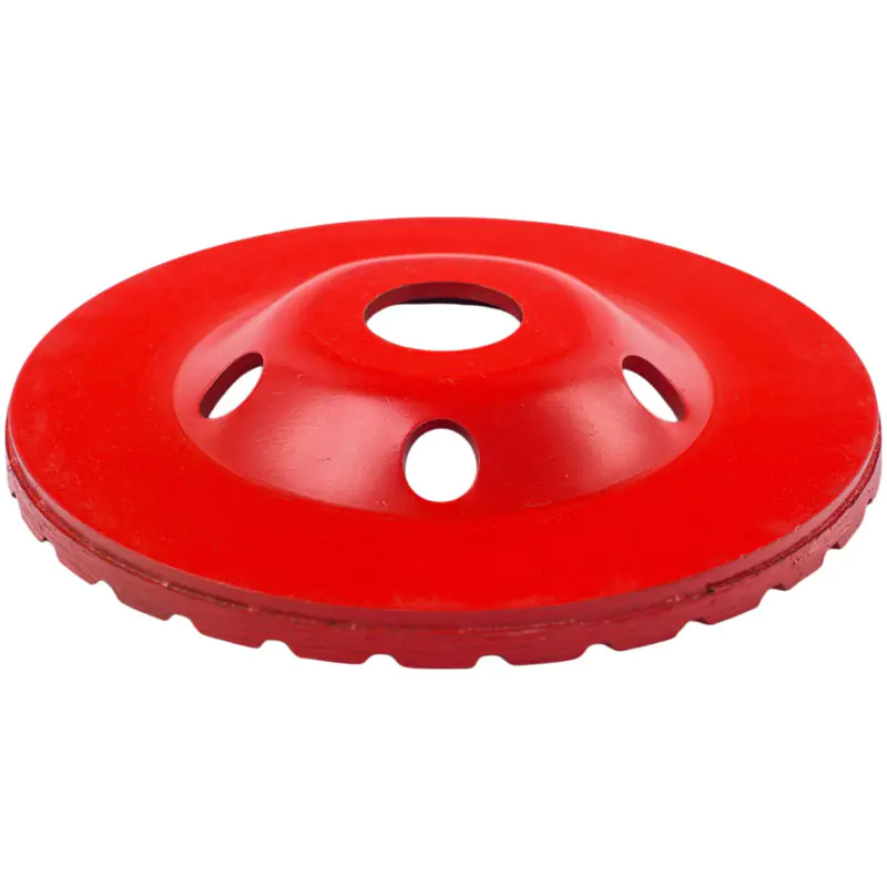 Чашка алмазная двухрядная предназначена для работы на угловых шлифовальных машинах и специальных алмазных шлифователях. Применяется для шлифования бетона, кирпича и камня. Корпус чашки представляет собой прочную отбалансированную металлическую основу. Шлифующими элементами являются алмазные сегменты, высотой 3 мм, расположенные веерообразно (тип TURBO). Подобное расположение сегментов способствует интенсивному охлаждению чашки и обеспечивает быструю, качественную шлифовку.