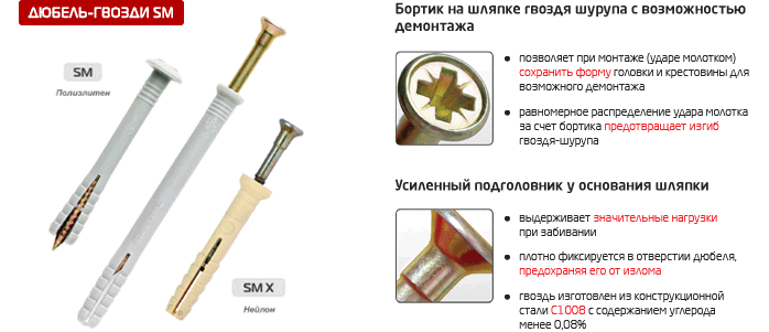 Дюбель-гвоздь 6*40. Нахлест. Используется для прижимного монтажа. В пачке 200 шт.