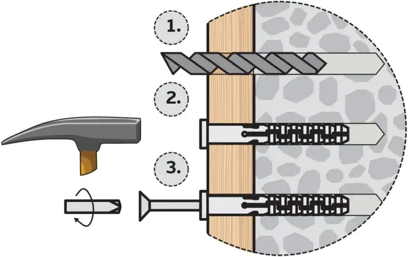 Дюбель-гвоздь с бортиком (гриб) Klimas SMK 6*60 нейлоновый. Используется для прижимного монтажа, для крепления деревянных планок, брусков, листов фанеры к бетону, полнотелому кирпичу, натуральному камню. В пачке 200 шт.