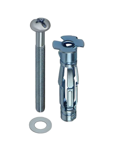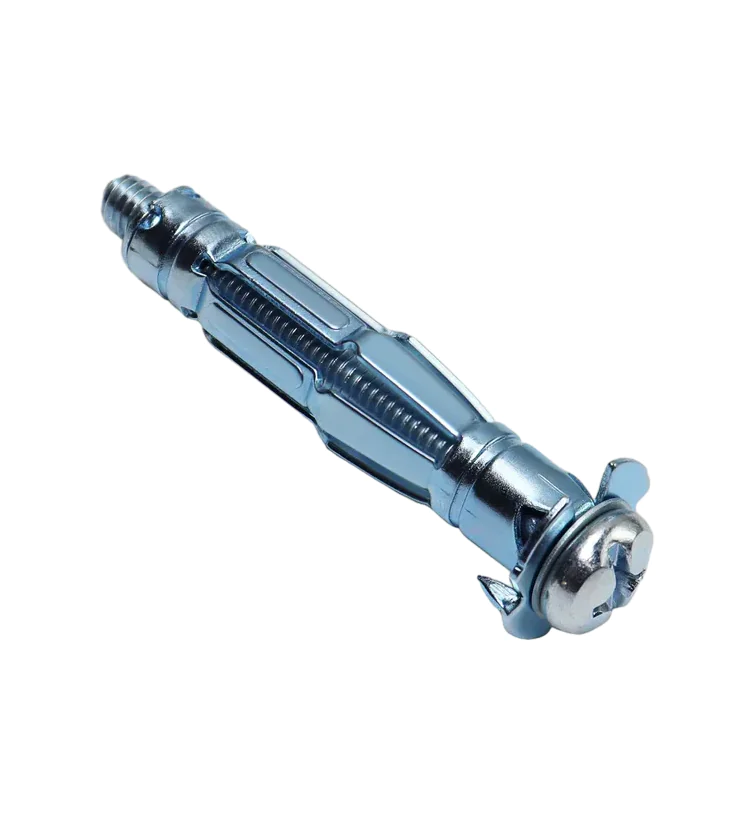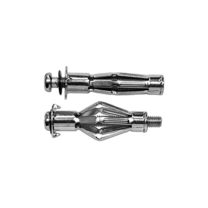 Дюбель состоит из стальной втулки с оцинкованным покрытием, резьбой на конце и зубчиками на шляпке. Сегменты втулки анкера раскрываются при монтаже и надежно удерживаются в материале, в том числе внутри полости. В комплекте шайба и метрический винт с комбинированным шлицом и полукруглой головкой.