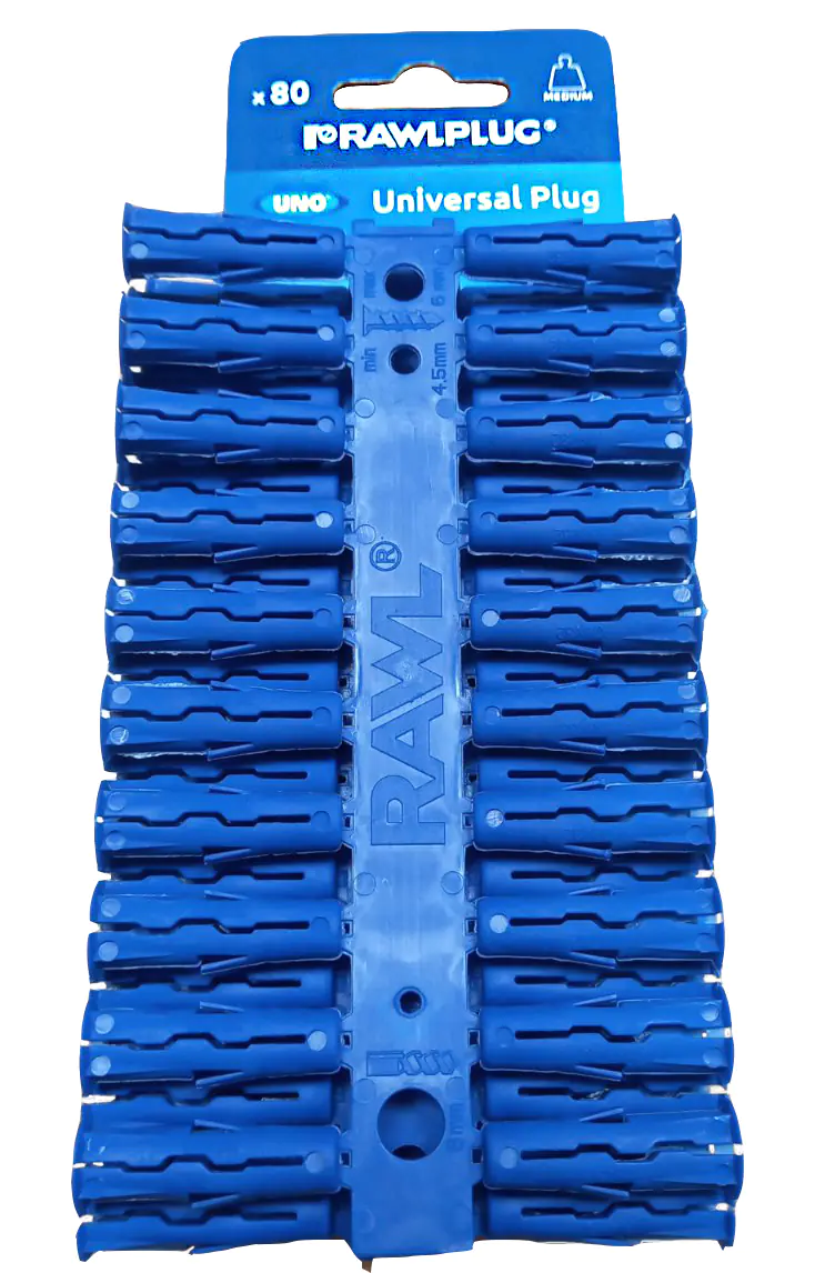 Вставить в отверстие дюбель UNO, после чего, дожать до момента полного углубления воротника.