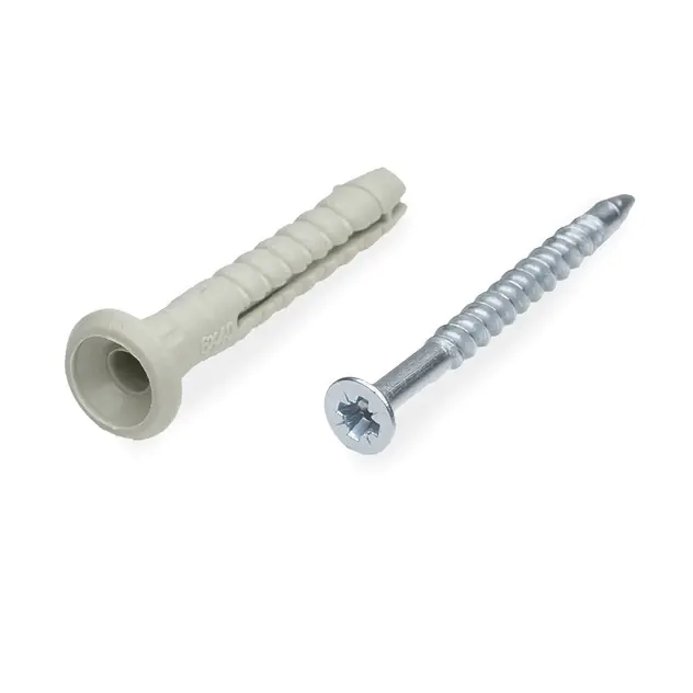 - Удобство монтажа, высокая скорость монтажа за счет предварительной сборки шурупа с дюбелем.
