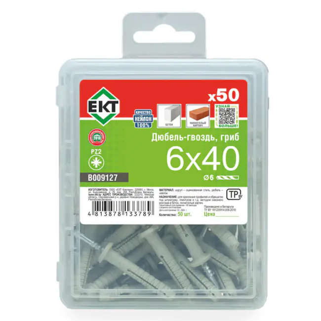 Дюбель быстрого монтажа (дюбель-гвоздь) 6х40 ЕКТ GL НЕЙЛОН предназначен для организации креплений с небольшими нагрузками в основных стеновых материалах. Монтируются как закручиванием, так и забиванием гвоздевого шурупа. Поставляются в предварительно-собранном состоянии, что позволяет повысить удобство и сократить скорость монтажа. В пачке 500 штук.