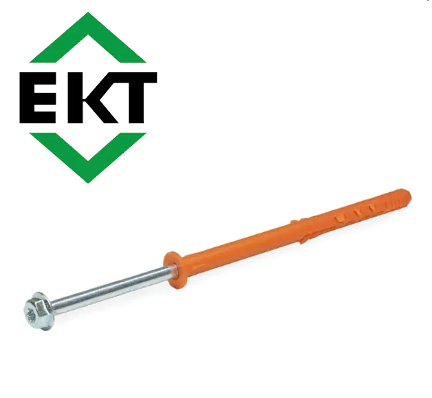 Рамный (фасадный) дюбель ЕКТ RD предназначен для крепления различных изделий методом сквозного монтажа к бетону, полнотелому и пустотелому кирпичу, газобетону и керамзитобетонным блокам. Шуруп изготовлен из оцинкованной стали, прочностью 8.8. Дюбель — из нейлона. Цена за штуку.
