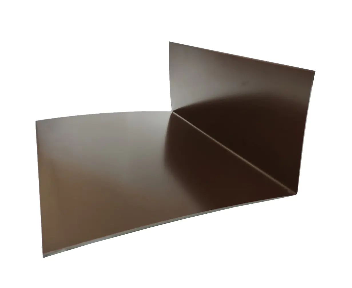 Примыкание верхнее используется в местах стыков кровли с другими поверхностями, например, с печной трубой, стеной, вентиляционной шахтой, парапетом. Нижняя планка имеет форму уголка с отогнутыми продольными кромками, которые позволяют надежно зафиксировать деталь в кирпичной или бетонной стенке. Планки используют при стыковке металлочерепицы с печной трубой (обвод). Для полной герметизации стыка с помощью этих планок формируют внутренний и наружный «фартуки». Цвет: RAL8017 (коричневый). Длина 2 м. Стороны 80 мм и 150 мм.